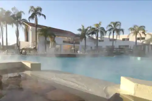 Ubicado a pocas cuadras del centro de Río Hondo, el hotel es un oasis de 30000 metros cuadrados rodeado de jardines y piscinas termales para el disfrute de sus huéspedes. Un lugar que invita a olvidarse del invierno y disfrutar del sol todo el año y de sus cálidas y transparentes aguas termales.